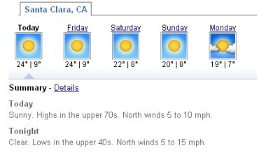 The last one is really key.  Many of my running friends say “Getting out of bed is the hardest part of running”. There’s some truth to that. The good news is that it’s California.  Sunny and warm. Palm trees.   Look at this forecast.