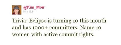 4) This would make an interesting EclipseCon talk. Ten Eclipse committers/contributors you should know and why