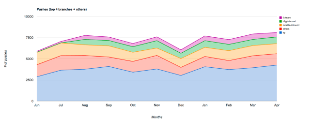 Here’s April’s monthly analysis of the pushes to our Mozilla development trees.  You can load the data as an HTML page or as a json file.