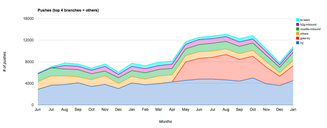 Here’s January 2015’s monthly analysis of the pushes to our Mozilla development trees. You can load the data as an HTML page or as a json file.