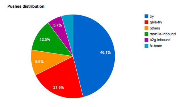 The three integration repositories (fx-team, mozilla-inbound and b2g-inbound) account around 22% of all the pushes