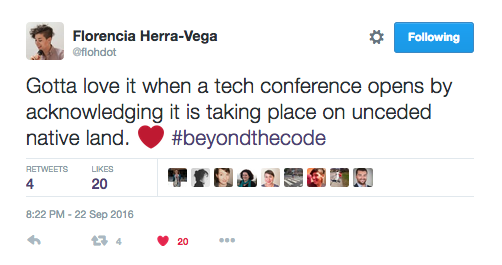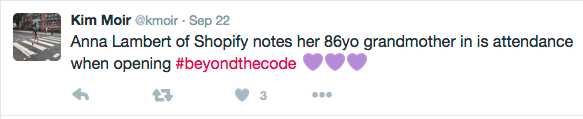 As a side note, there were a lot of Shopify folks in attendance because they ran the conference. They sent a bus of people from their head office in Ottawa to attend it. I was really struck at how diverse some of the teams were. I met group of women who described themselves as a team of “five badass women developers” 💯 As someone who has been the only woman on her team for most of her career, this was beautiful to see and gave me hope for the future of our industry. I’ve visited the Ottawa Shopify office several times (Mr. Releng works there) and I know that the representation of of their office doesn’t match the demographics of the Beyond the Code attendees which tended to be more women and people of colour. But still, it is refreshing to see a company making a real effort to make their culture inclusive. I’ve read that it is easier to make your culture inclusive from the start, rather than trying to make difficult culture changes years later when your teams are all homogeneous. So kudos to them for setting an example for other companies.