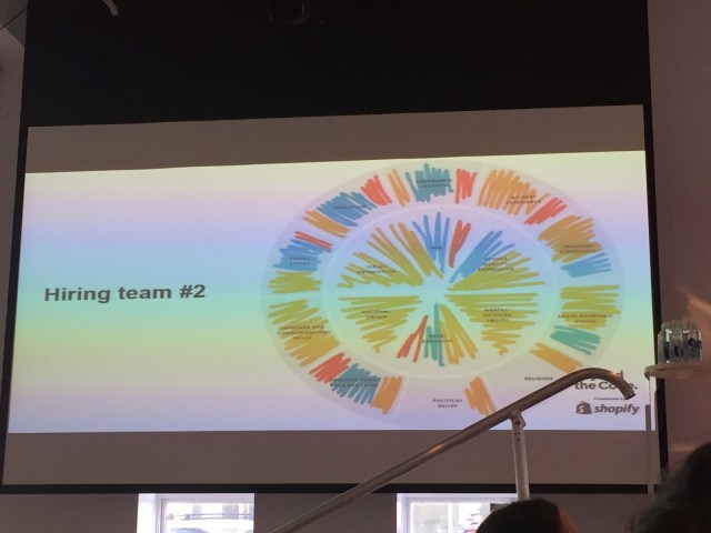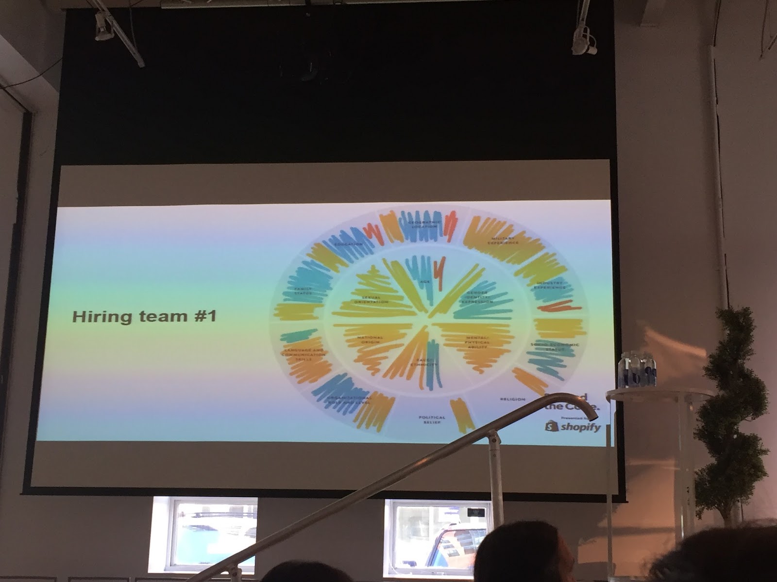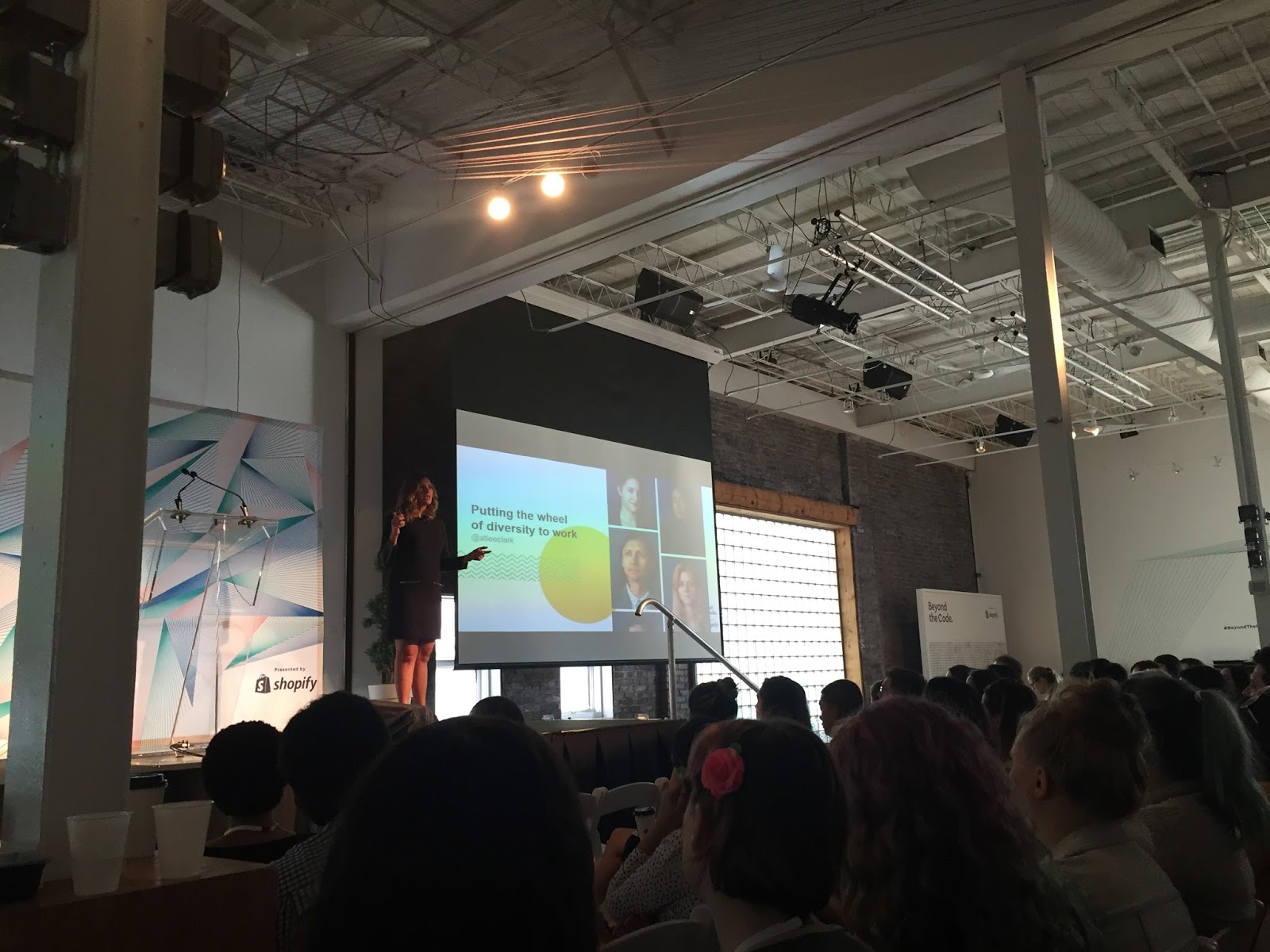 The first speaker was Atlee Clark, Director of App and Developer relations at Shopify who discussed the wheel of diversity.