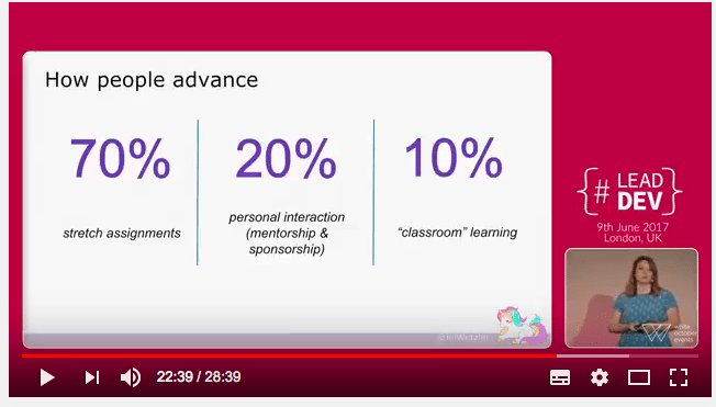 - This slide was really an “a-ha” moment for me. No matter how much you study or learn on your own, the most important things to advance to more meaningful work are stretch assignments and sponsorship. It you don’t have someone advocating for you to do more challenging work, you won’t have that opportunity no matter how much work you do on your own.