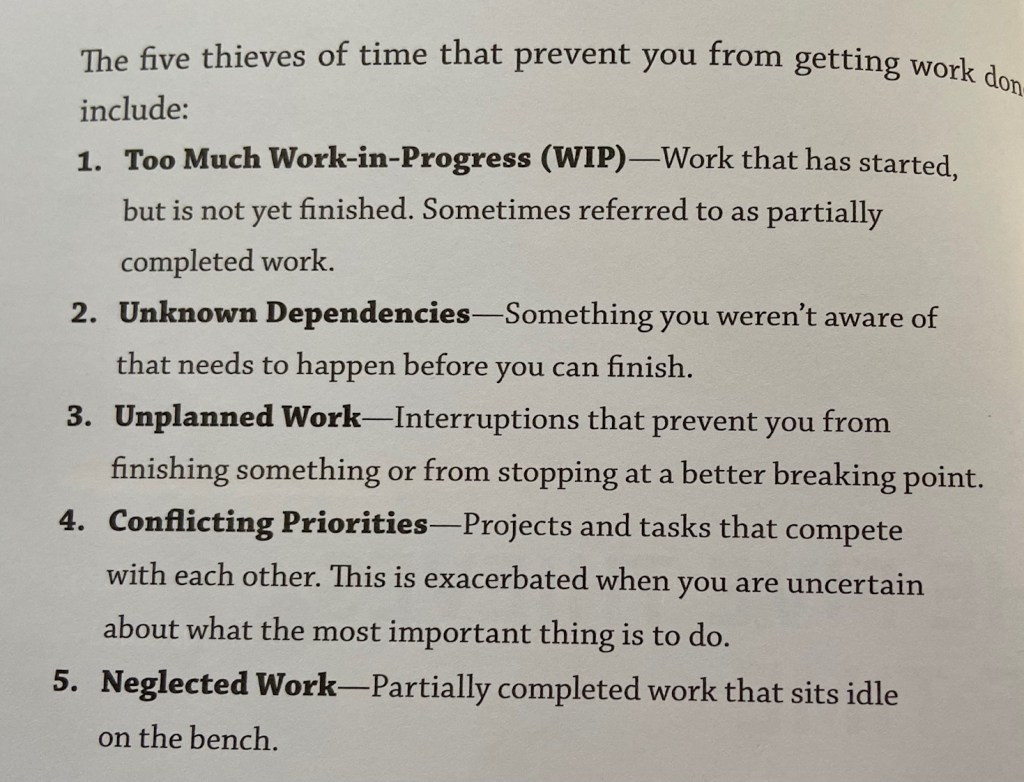 Making Work Visible by Dominic Degrandis describes the five thieves of time in a work environment and tooling and strategies to make that work visible and properly prioritize the work.